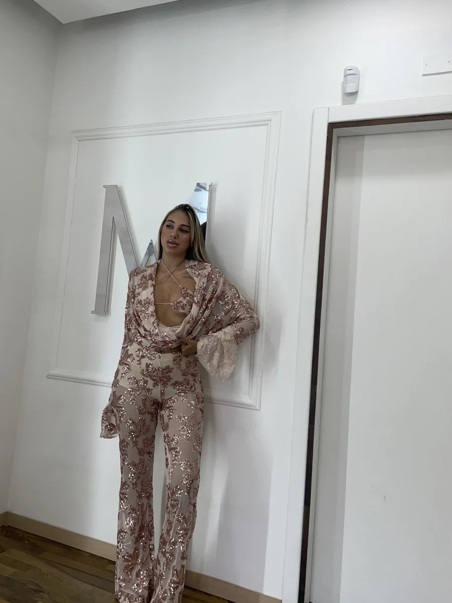 coordinato tre pezzi con paillettes