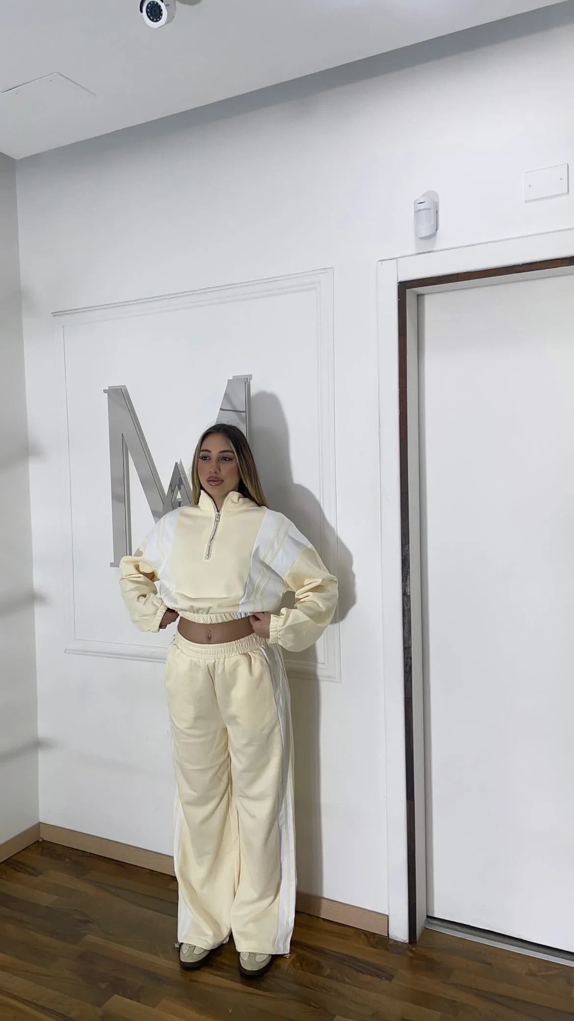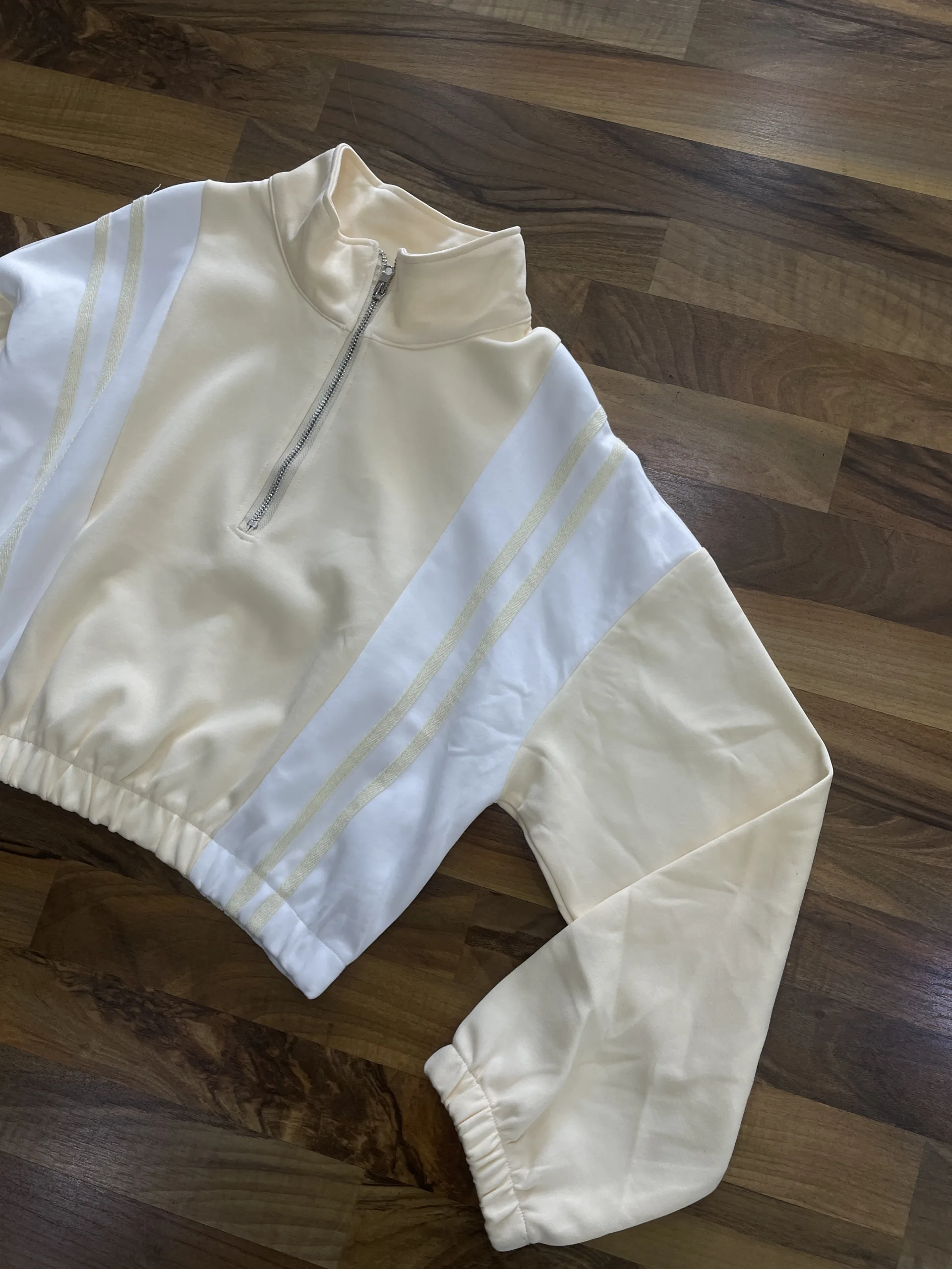 Completo due pezzi con felpa zip e pantaloni relaxed fit con elastico in vita. Comodo, moderno e perfetto per un look sporty chic quotidiano.