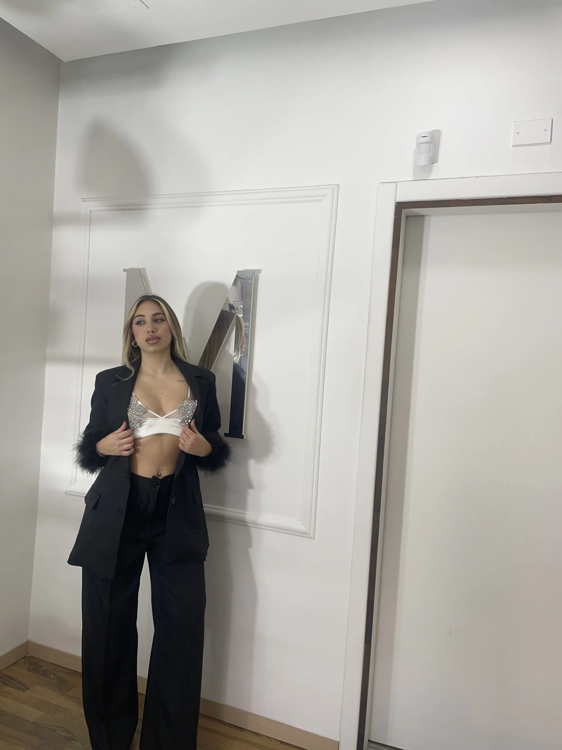 Bralette impreziosita da dettagli gioiello che illuminano il décolleté. Elegante e sensuale, perfetta da indossare da sola o sotto blazer per un look glamour.