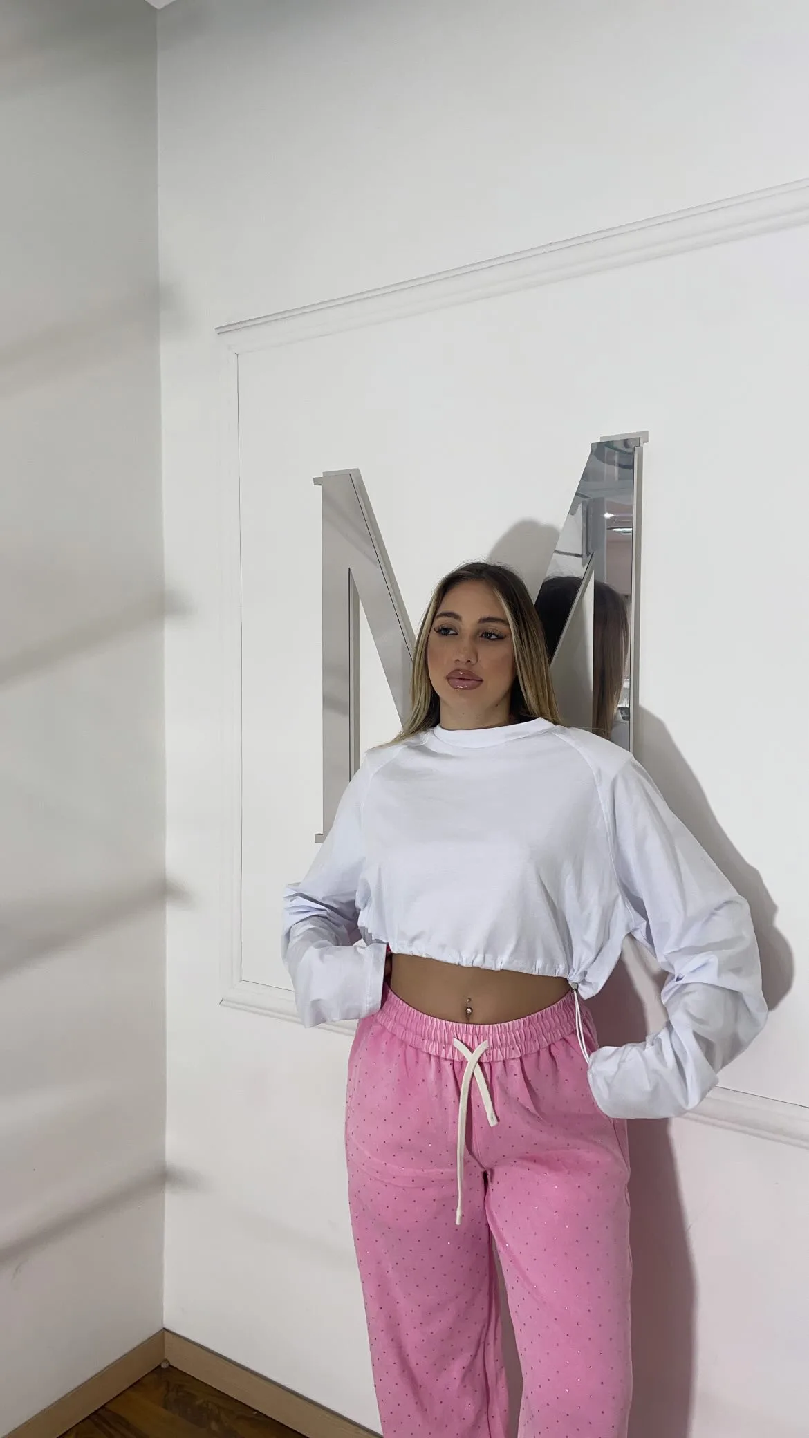 Maglia corta a maniche lunghe con elastico regolabile sul fondo per stringere o allargare a piacere. Taglia unica.