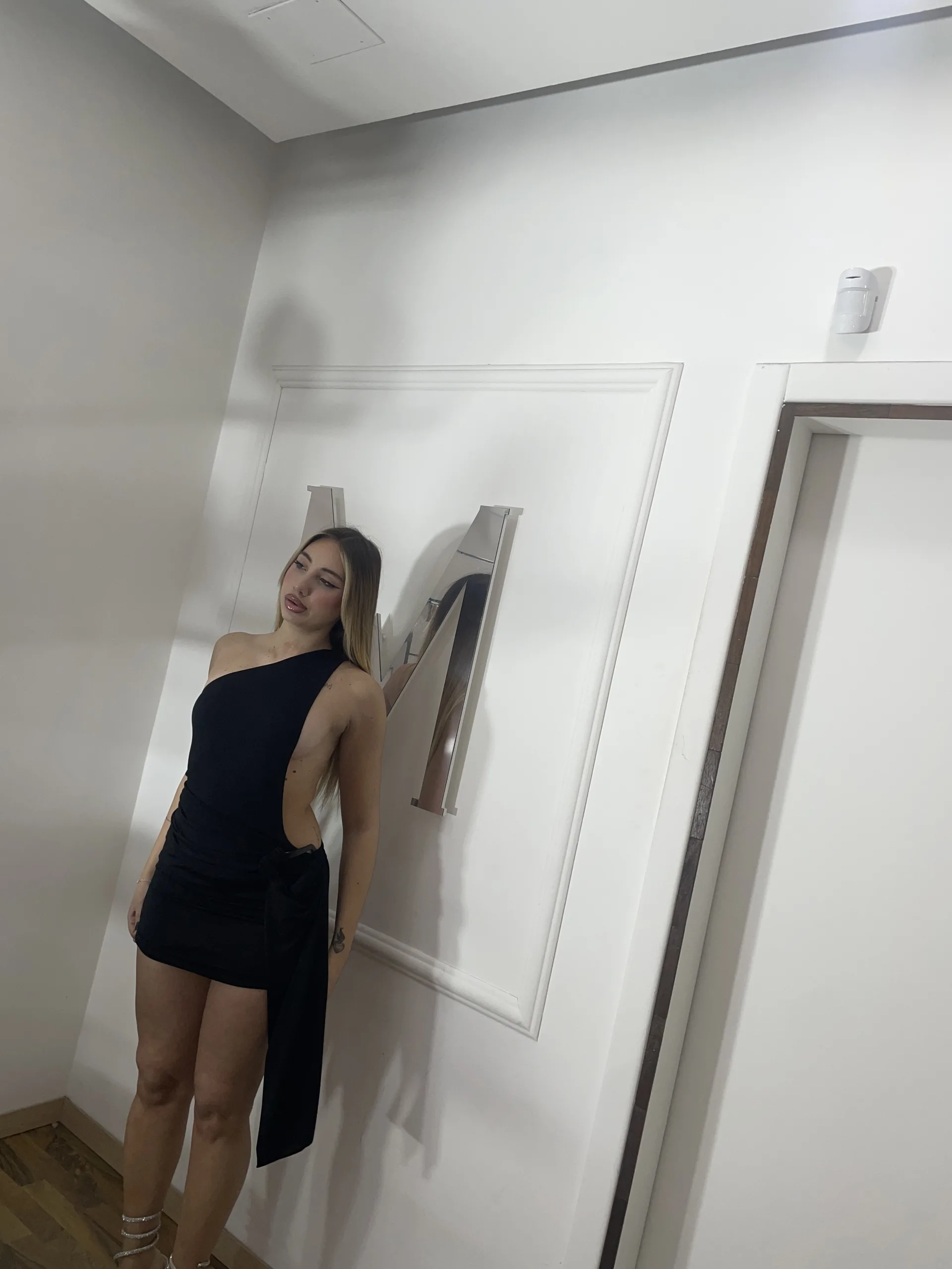 Abito monospalla con schiena completamente scoperta, taglia unica.