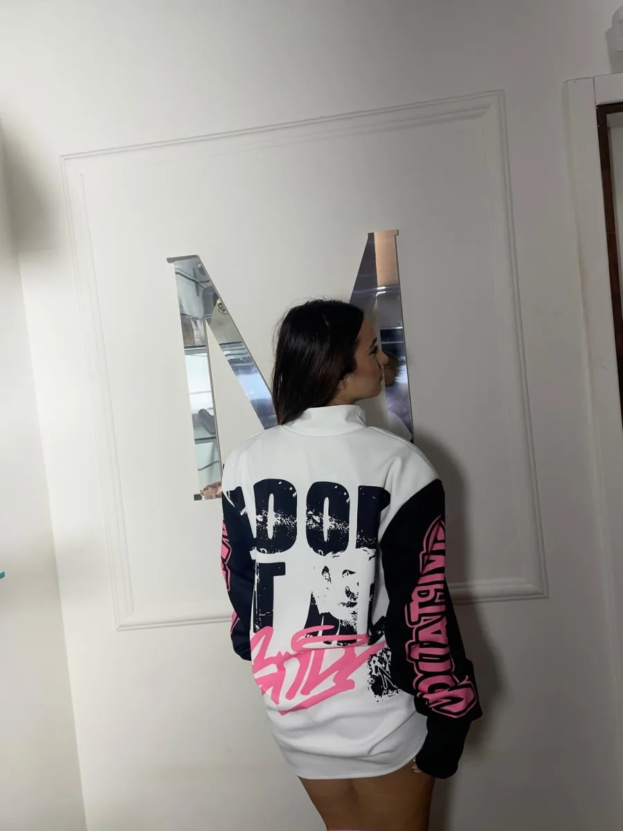 Maglia over stile street con stampa labbra pop. Da indossare come mini dress o con shorts per un look femminile e deciso.