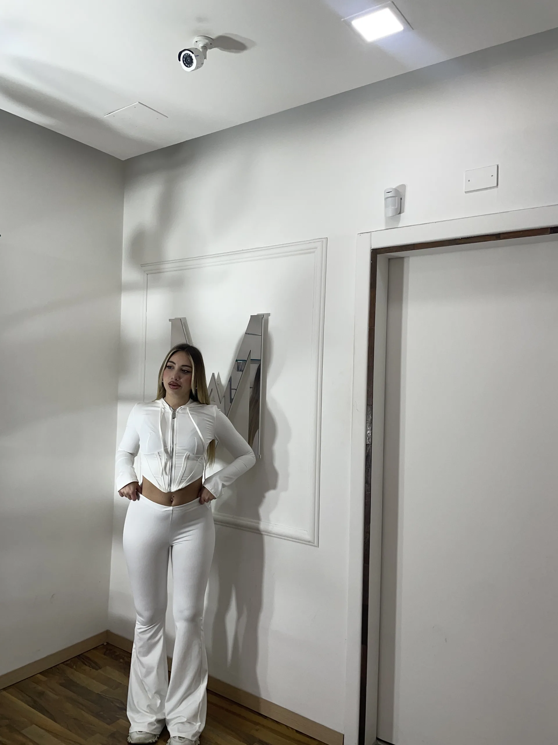 Set composto da top con zip frontale e pantalone a vita alta con linea leggermente svasata. Vestibilità aderente ed elasticizzata, ideale per un look comfy ma curato