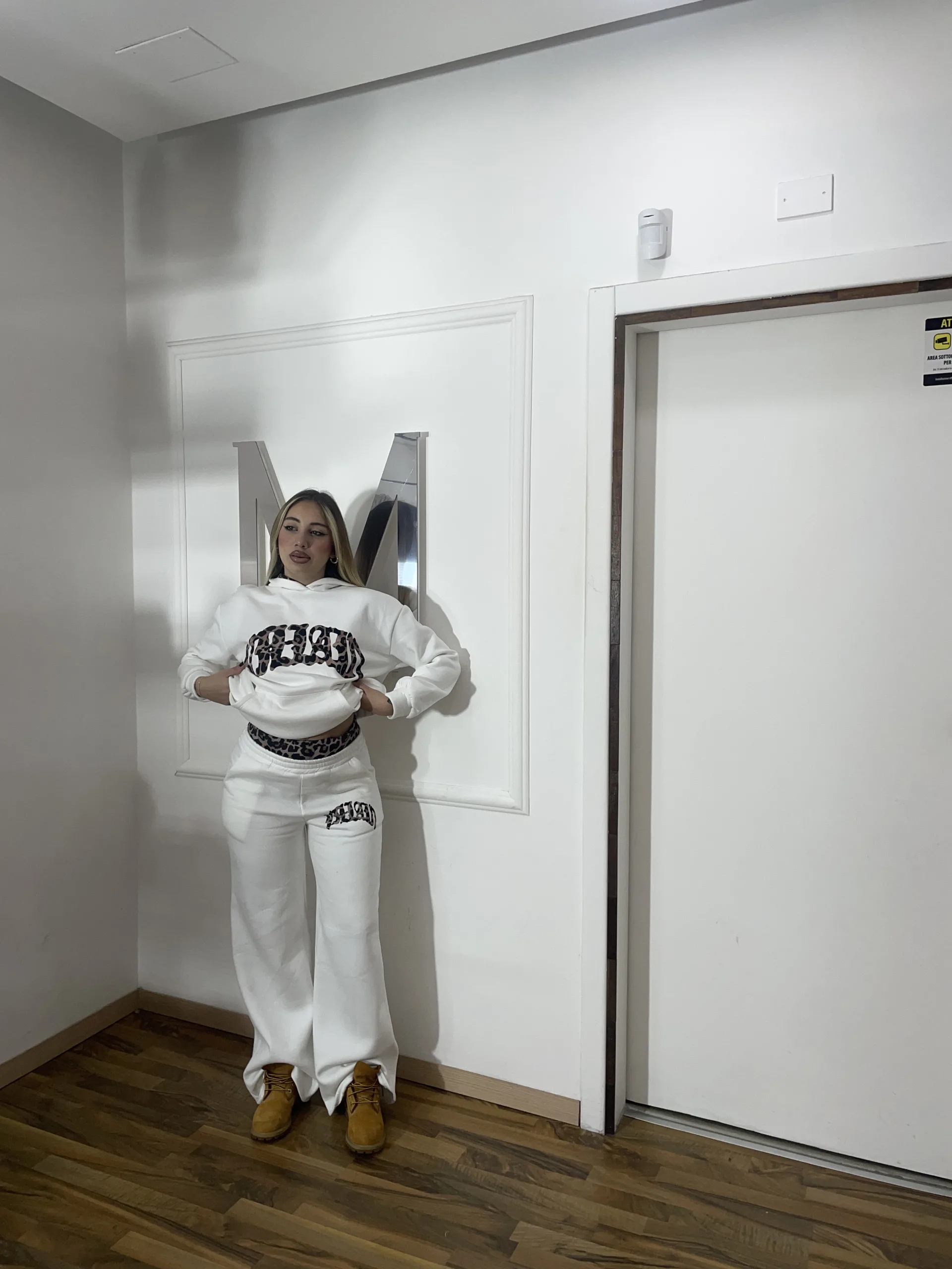 Set felpa e pantaloni con dettagli leopard. Vestibilità morbida, taglia unica.