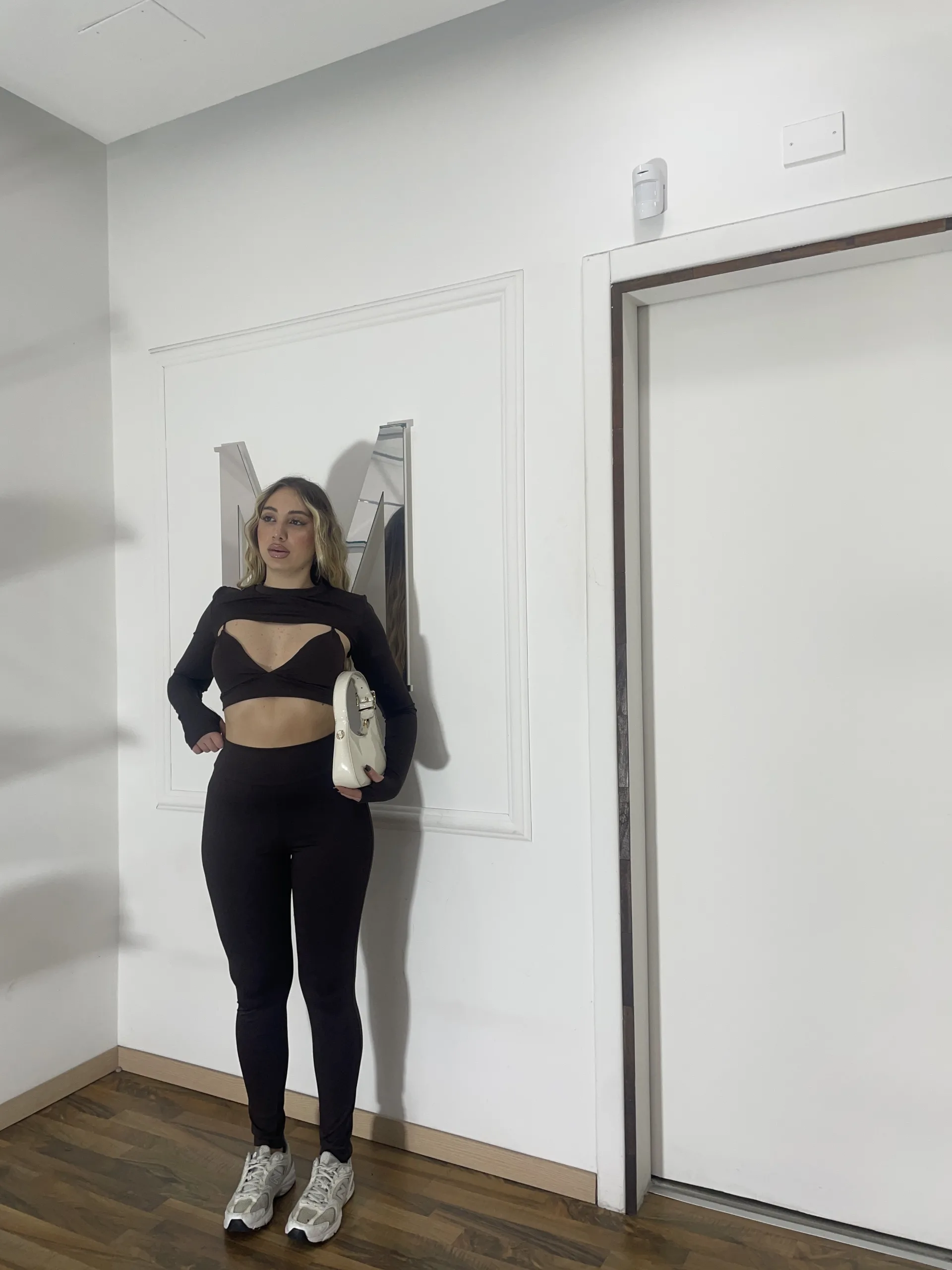 Completo composto da top crop con dettaglio cut-out frontale e leggings aderenti effetto sculpting che valorizzano e definiscono la silhouette.