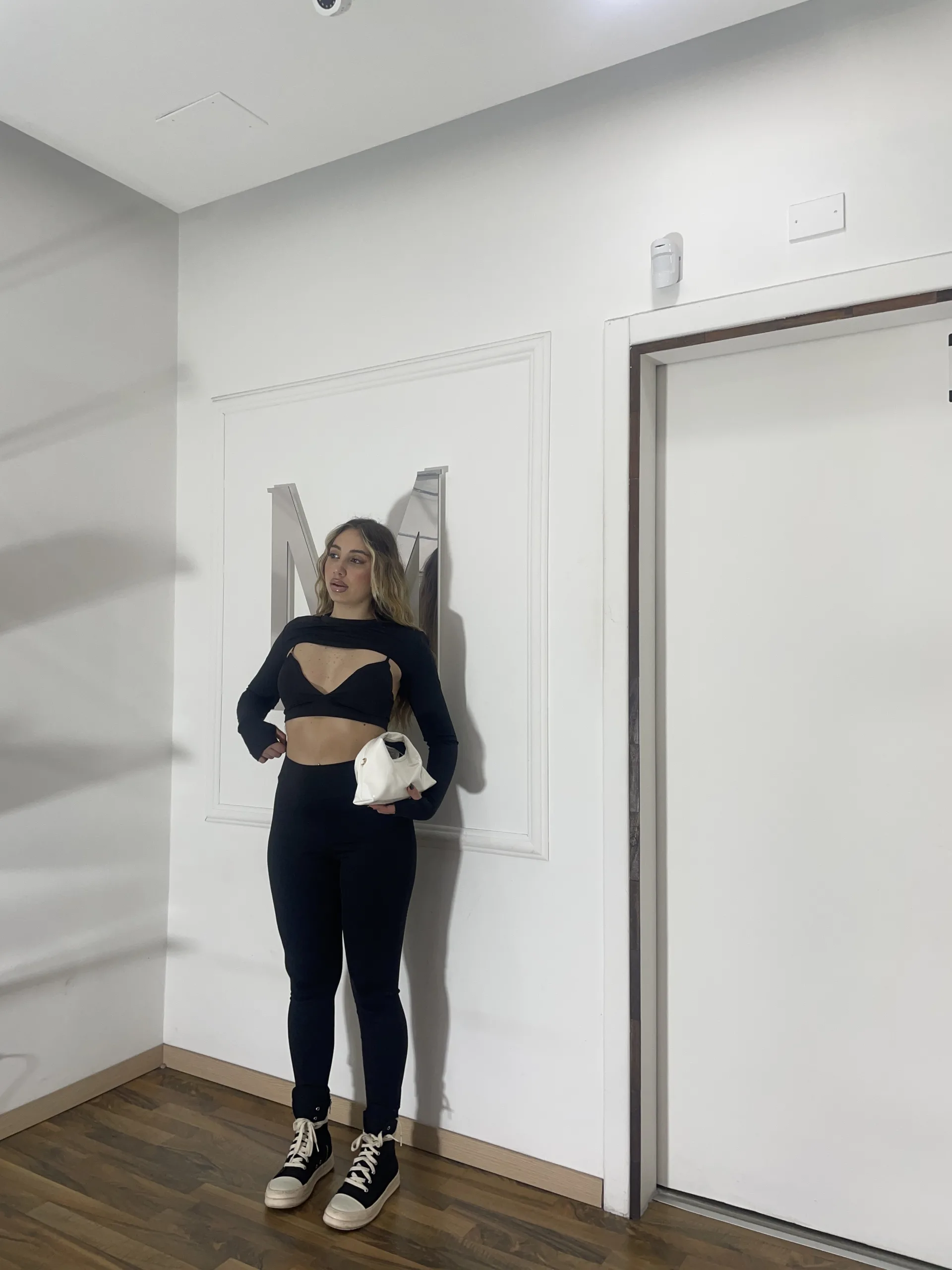 Completo composto da top crop con dettaglio cut-out frontale e leggings aderenti effetto sculpting che valorizzano e definiscono la silhouette.
