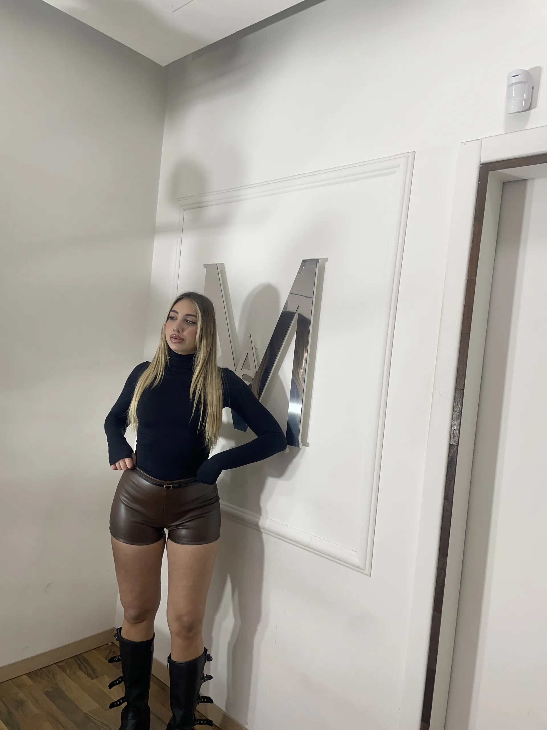 Shorts in ecopelle morbida, vestibilità slim e linea pulita. Modello a vita alta, leggermente elasticizzati per un comfort ideale. Chiusura con zip.