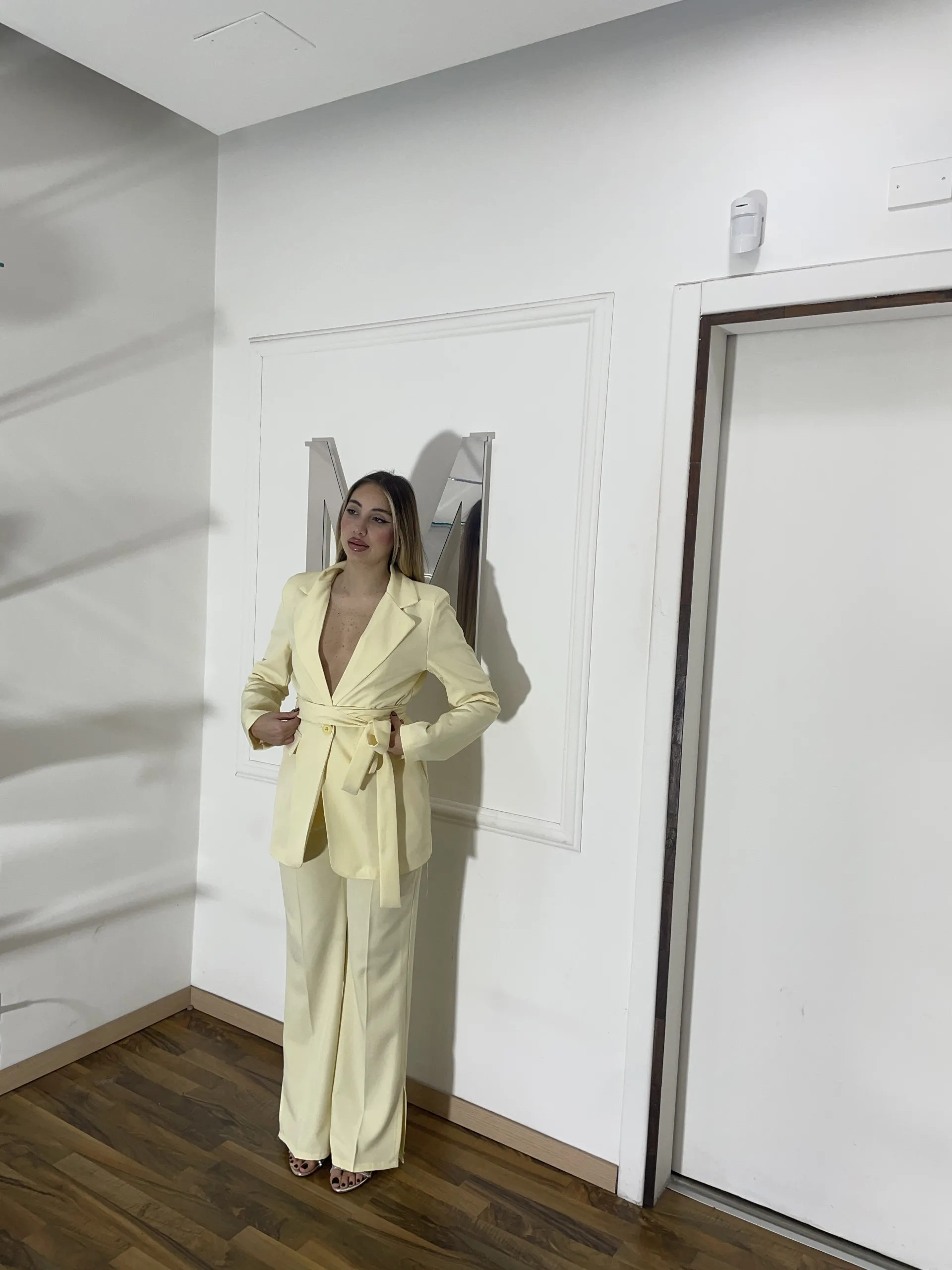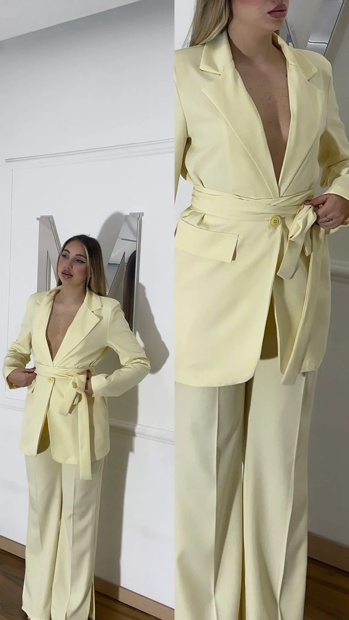 Tailleur taglia unica, composto da pantalone e giacca con cintura