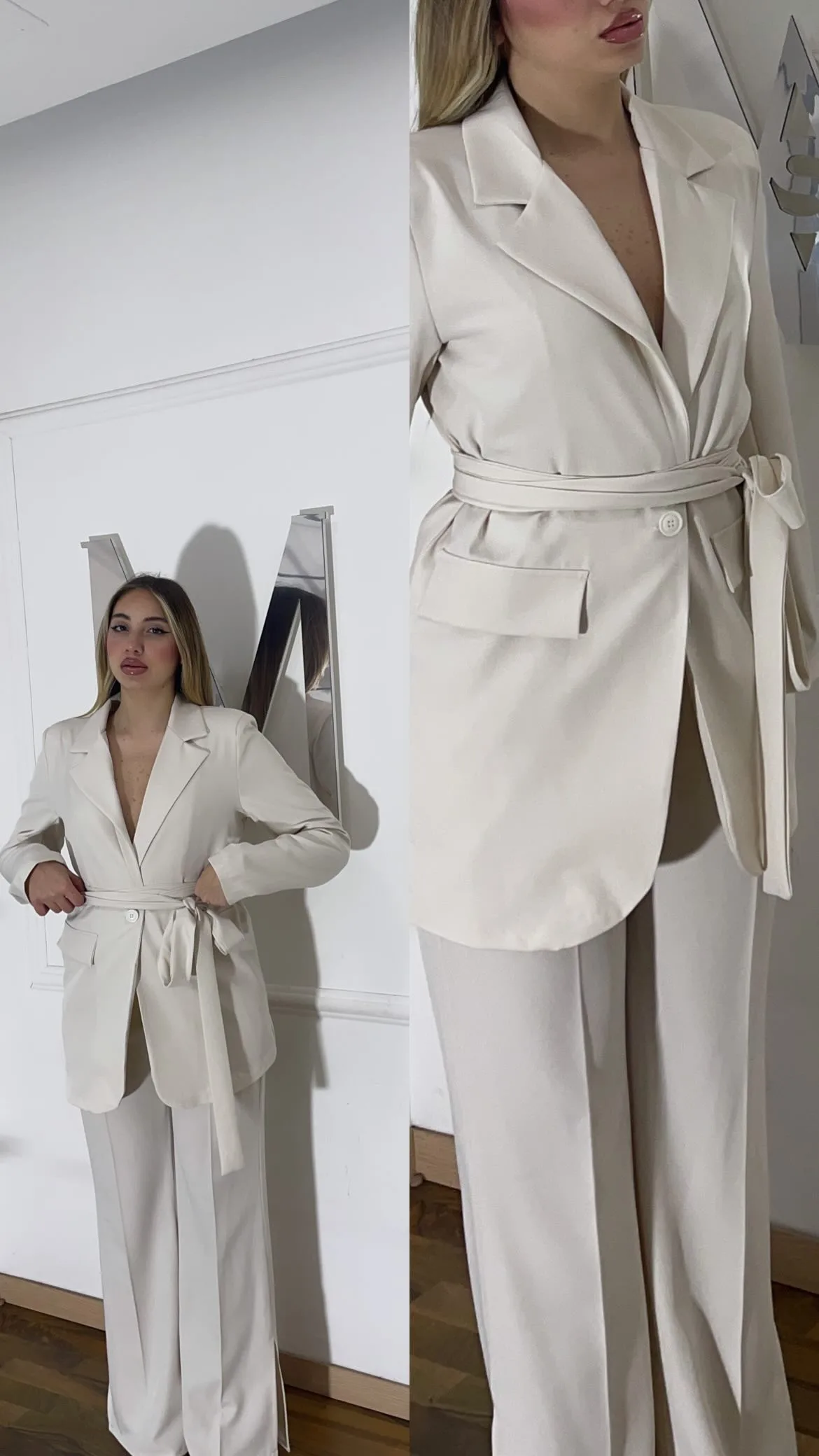Tailleur taglia unica, composto da pantalone e giacca con cintura